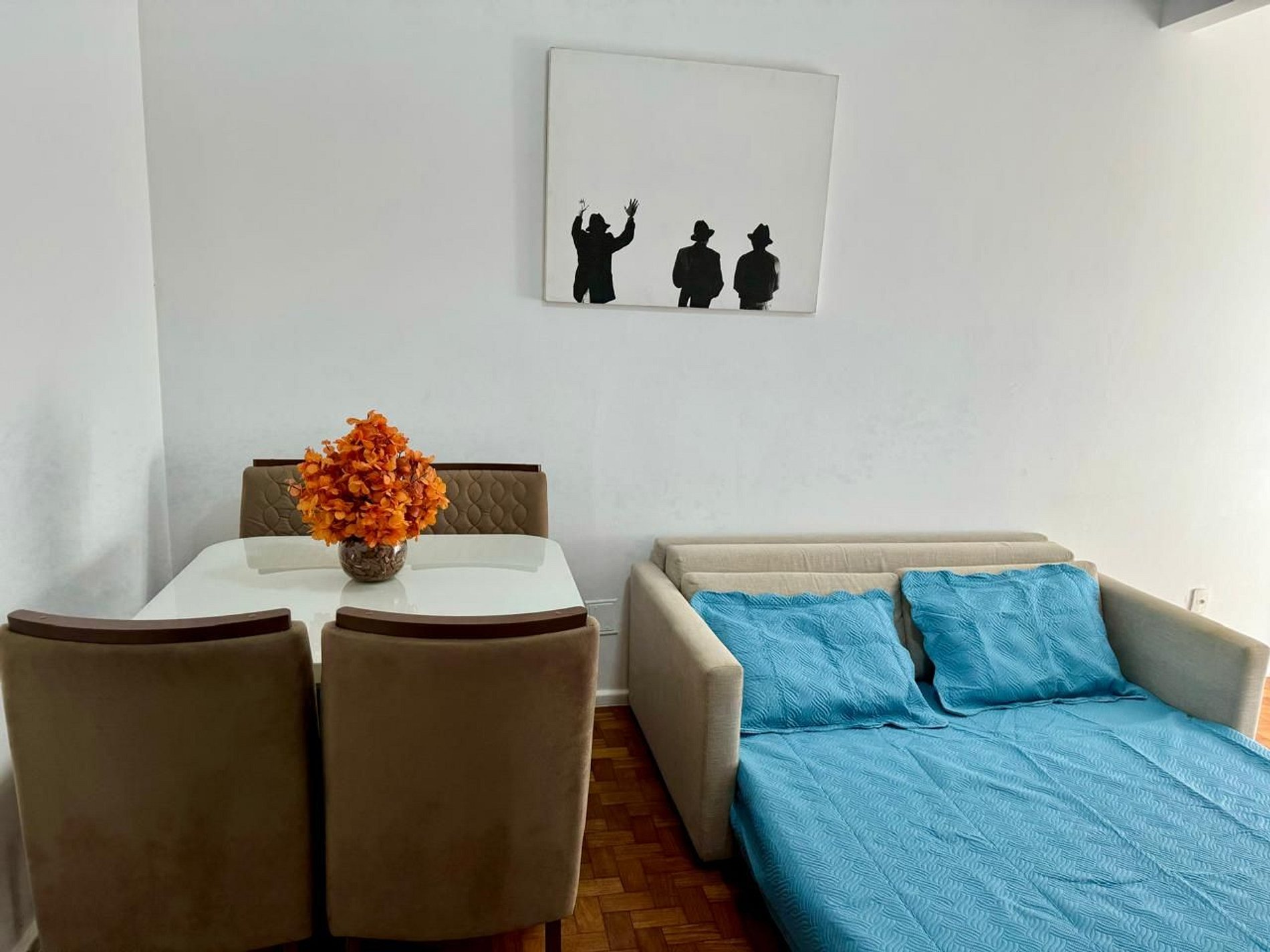 Adicional de hóspede para 2 pessoas no sofá caba é mediante solicitação de no mínimo 48 horas antes do check in pelo chat.